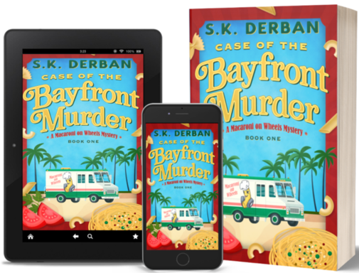 Case of the Bayfront Murder is the first book in author S.K. Derban’s Macaroni on Wheels Mystery series, and it is a unique debut story for a couple of reasons. With its pair of very enthusiastic amateur sleuths who get involved just because they want to, and a faith-forward foundation underlying the plot, the book offers fresh perspectives on the cozy mystery genre.